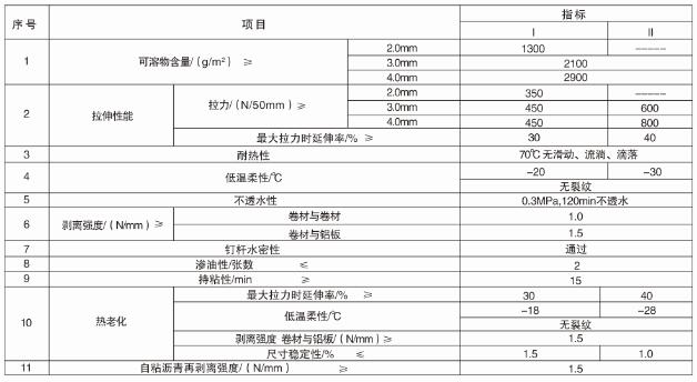 濕鋪防水卷材物理學性能