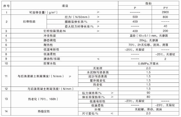 預(yù)鋪防水卷材物理學性能